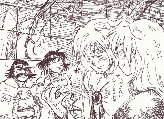 くわのこの子(http://kuwanomi.blog.shinobi.jp/)さんが祝1周年との事で(ほんとおめでとうございます)、何か描かせていただけませんか?とリクを頂きに行った所「大丈夫」というお題を考えてくださったんですね。